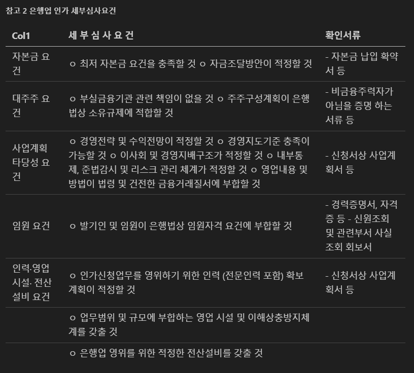 ###### 참고 2 은행업 인가 세부심사요건