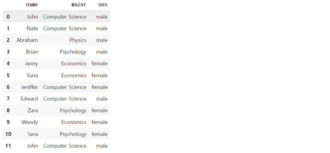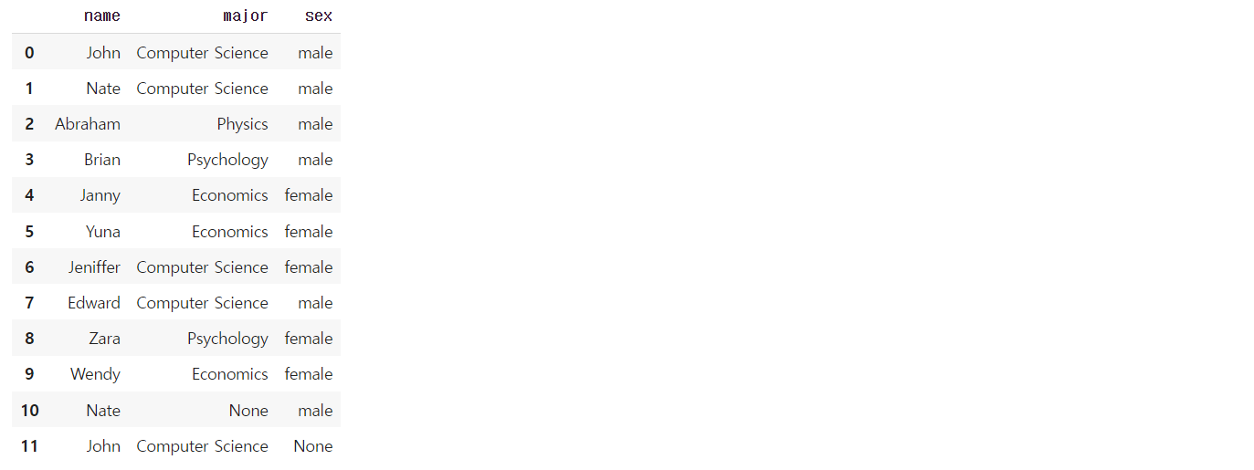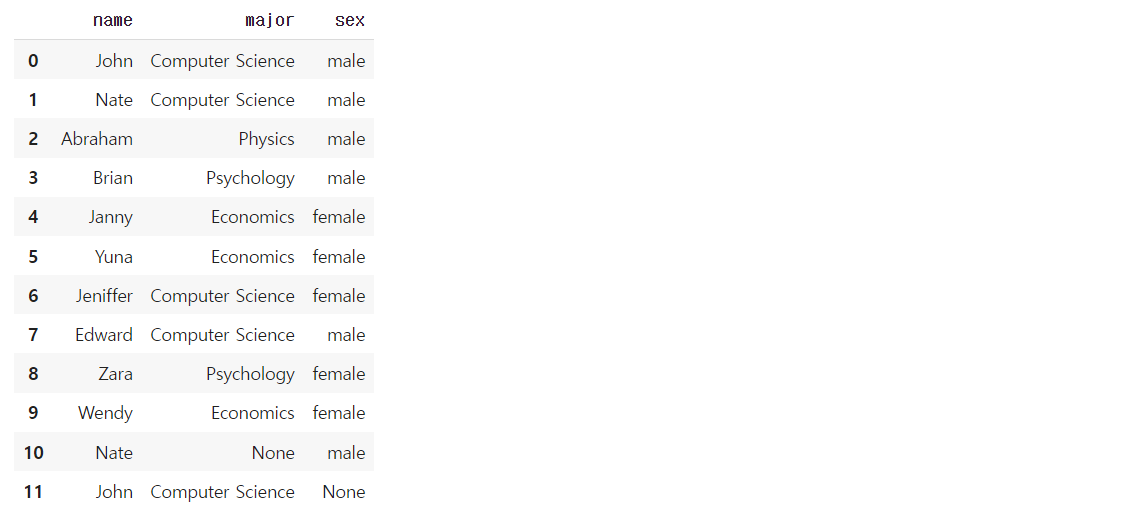 {'name': 'John', 'major': "Computer Science", 'sex': None},