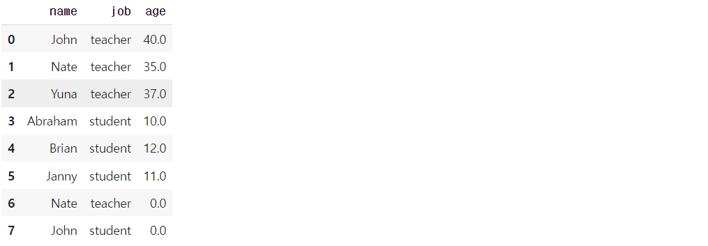 0으로 설정하기 보다는 선생님의 중간 나이, 학생의 중간 나이로, 각각의 직업군에 맞게 Null값을 변경해줍니다.