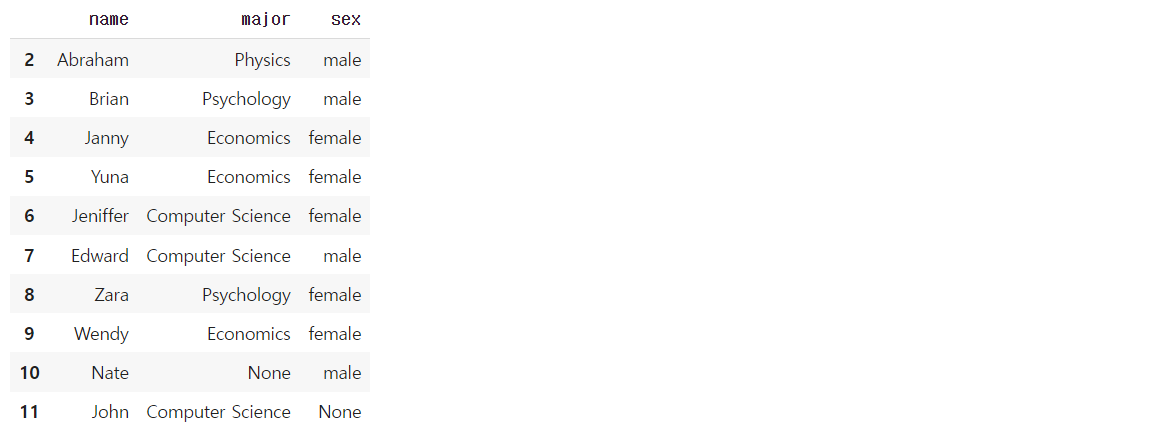 {'name': 'Nate', 'major': None, 'sex': "male"},