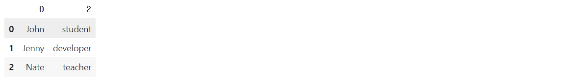 모든 로우를 보여주되, 컬럼 0와 2만 출력하는 예제입니다.