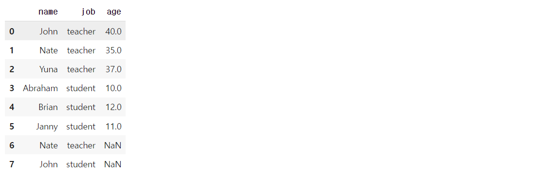 {'name': 'Nate', 'job': "teacher", 'age': None},
