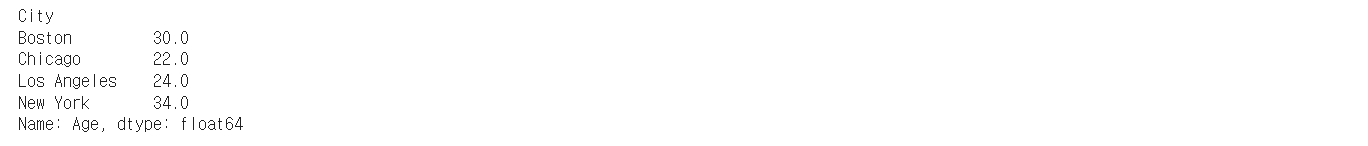 - 다음과 같은 DataFrame에서 City를 기준으로 평균 나이를 계산하세요