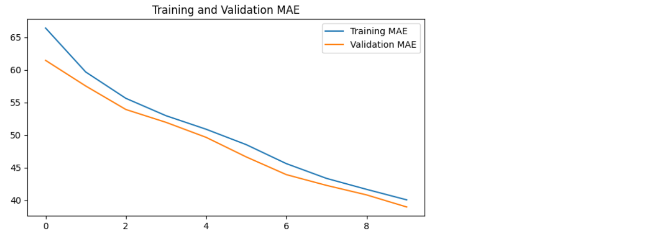 22781/22781 [==============================] - 107s 5ms/step - loss: 40.0640 - mae: 40.0640 - val_loss: 38.9703 - val_mae: 38.9703