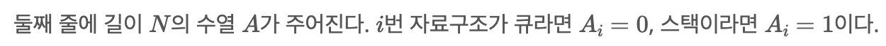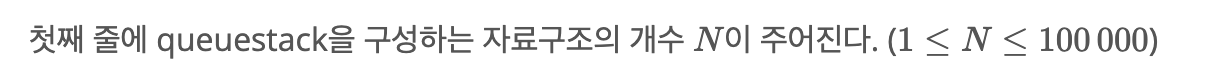 N = int(input()) # queuestack을 구성하는 N개의 자료구조
