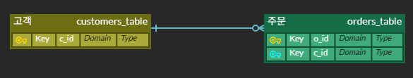 * orders_table.c_id → customers_table.c_id 외래 키 매핑