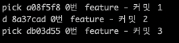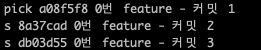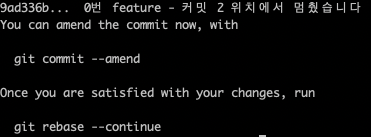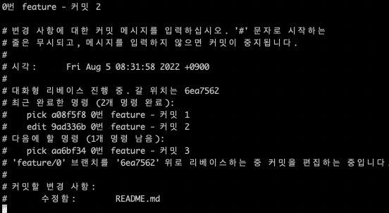 현재 “0번 feature - 커밋 1” 메세지를 “0번 feature - 커밋 1 (수정)“ 으로 변경