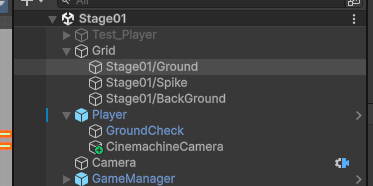 다른 장애물 하고 배경, 밟을 바닥을 따로 했기 때문에 해당 Ground 부분만 합쳐주겠습니다.