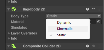 해당 Composite Collider 2D 를 추가하면 Rigidbody 2D도 같이 생겨나게 됩니다.