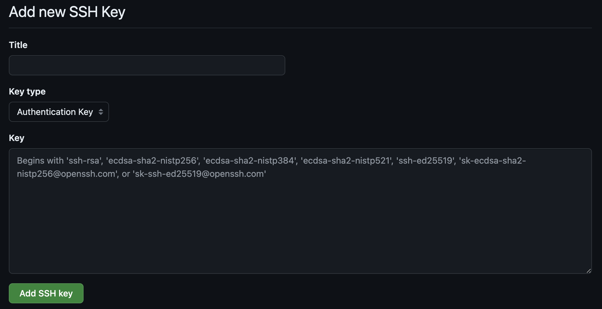 2. 키 입력 후 Add SSH Key 클릭
