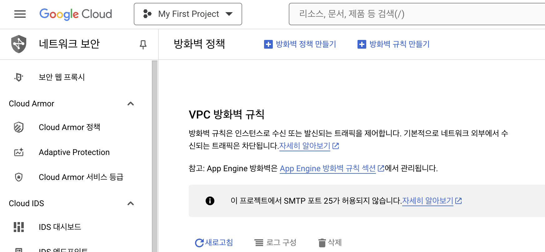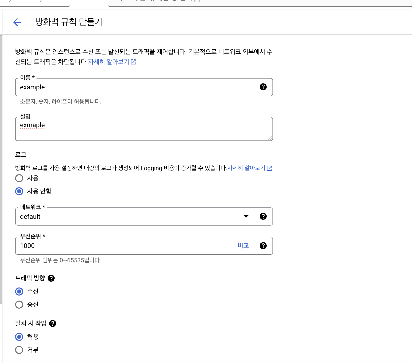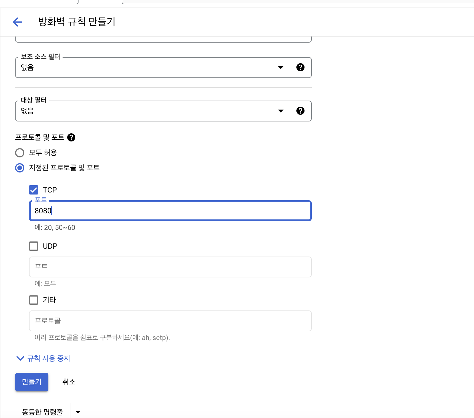 - VPC 네트워크 → 방화벽 → 방화벽 규칙 만들기