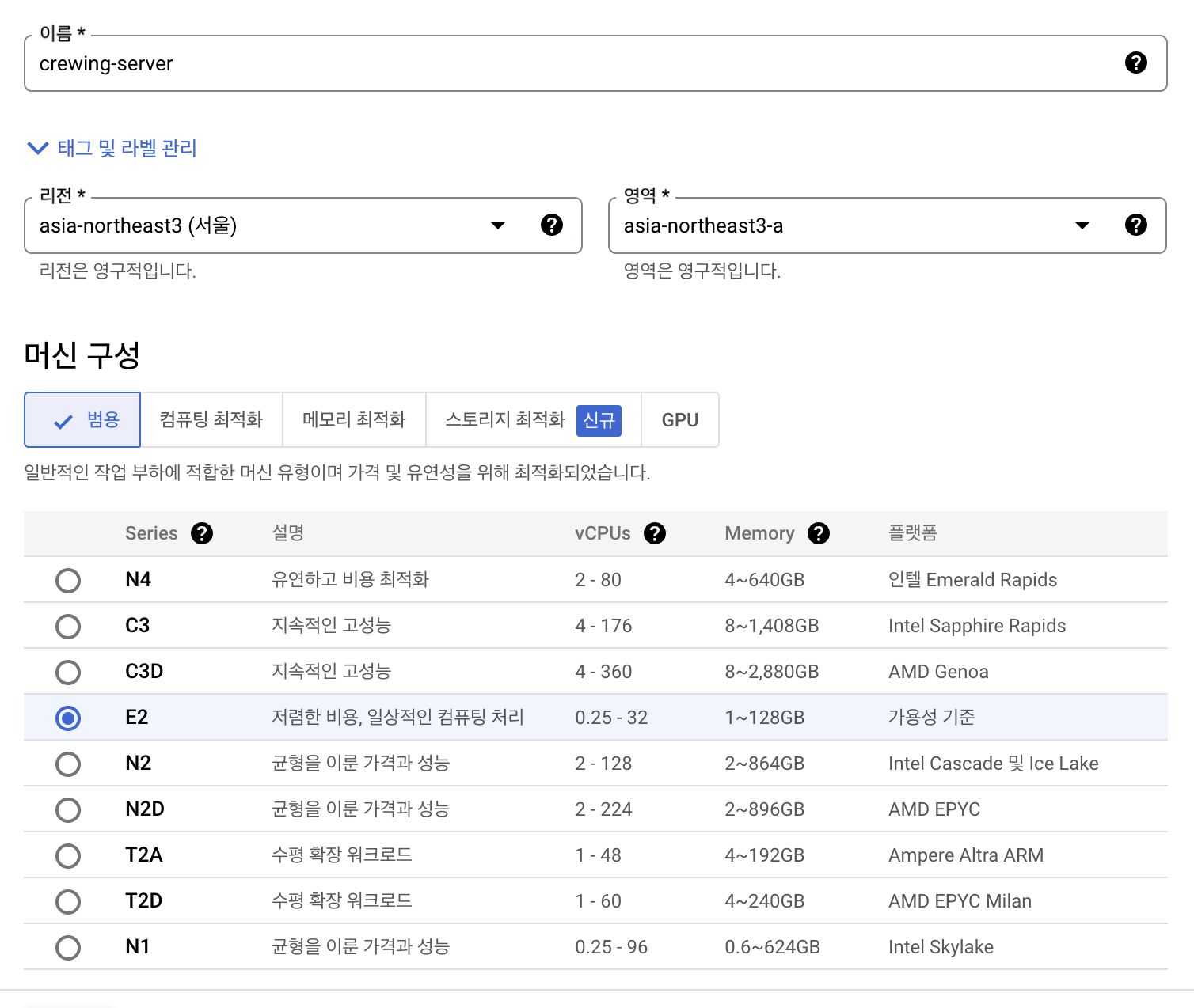 - 영역 - asia-northeast3-a