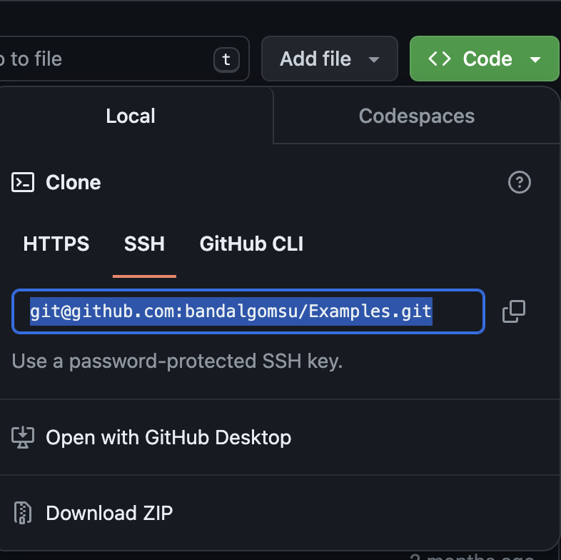 1. Repository의 code에서 SSH를 복사