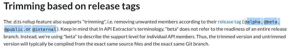 릴리즈 태그라는 부가적인 규칙이 있기는 하지만, 아무튼 타입들을 타입을 롤업하는 과정에서 @internal 로 마크를 하면 dts 파일에 나타나지 않게 할 수 있는것이다. 세상에 🤦♂️