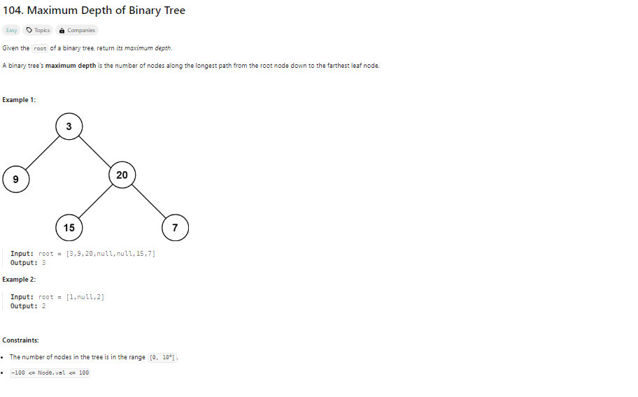 - maxDepth(root.right) + 1의 재귀는 노드가 3개일때