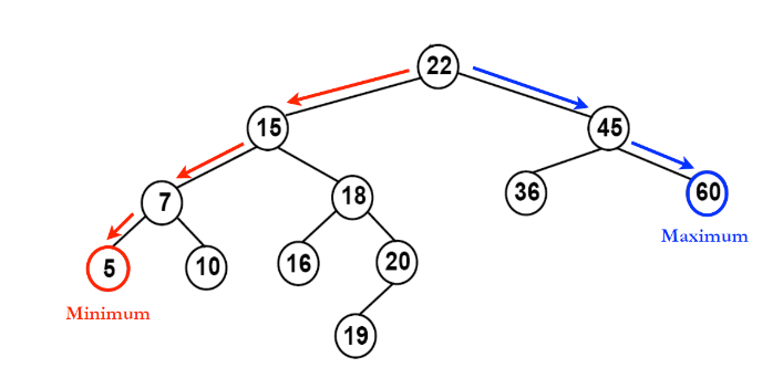 - 왼쪽 서브 트리 키들은 루트 키보다 작다.