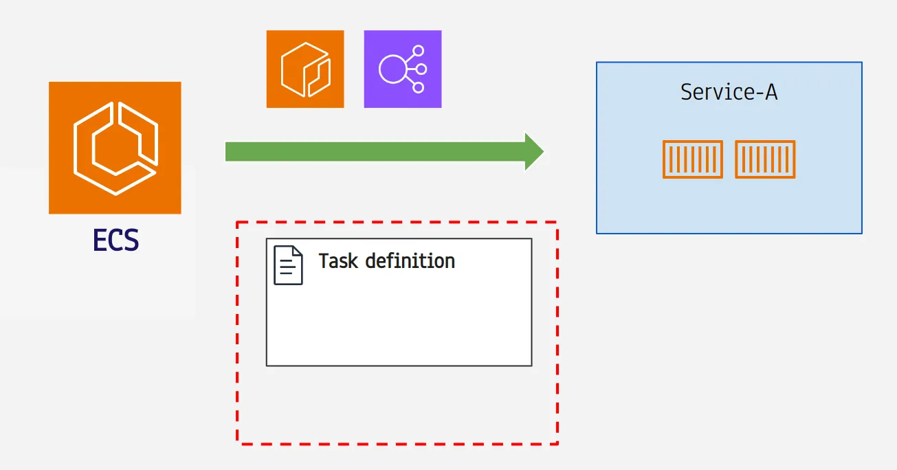 - 몇 번 port로 실행 할지 등의 애플리케이션 실행 정보가 필요합니다. 이 실행정보를 저장하고 있는게 “Task definition”입니다.