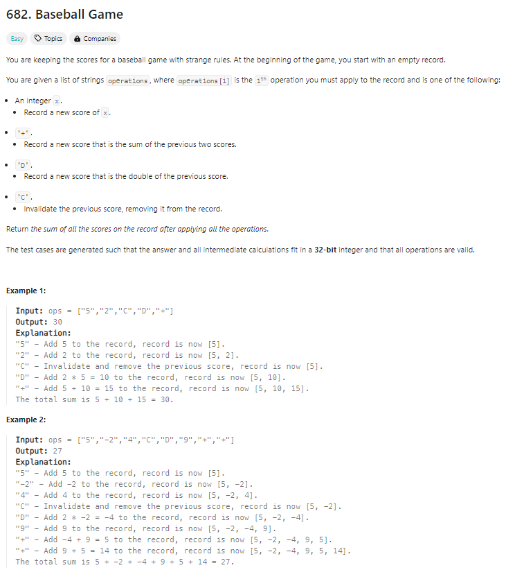 public int calPoints(String[] operations) {
