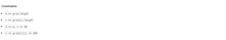 - for문을 통해 오름차순한 배열에 대해 grid[0].length부터해서 --하여 큰값을 비교한다.