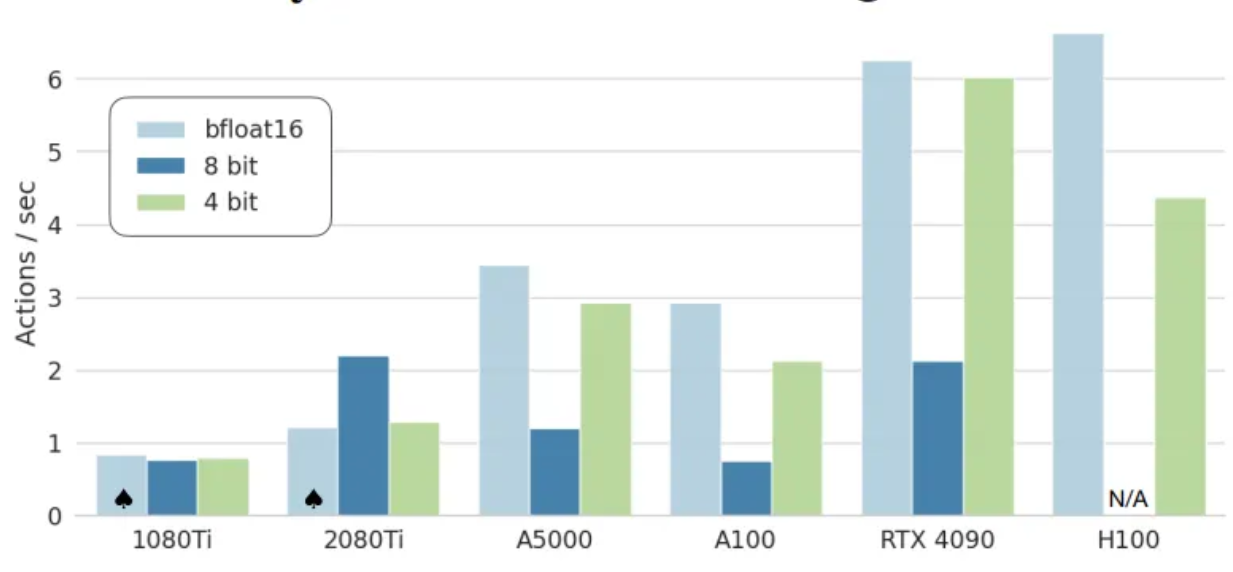 - 다양한 소비자 및 서버 급 GPU에서 OpenVLA의 추론 속도를 보여줌