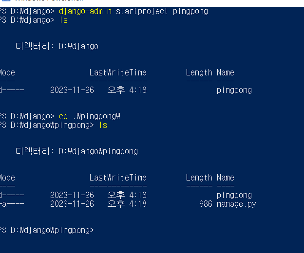 django-admin startproject 프로젝트이름