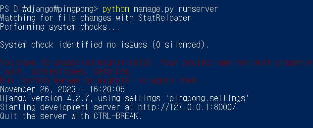 django 프로젝트가 잘 동작하는지 확인해준다