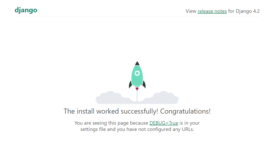 장고 프레임워크 설치가 성공적으로 진행된 페이지를 볼수있다!