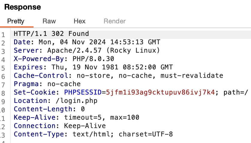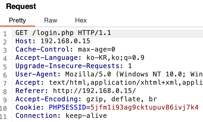 - PHPSESSID는 PHP의 기본 세션 쿠키 이름이고 세션 ID는 사용자별로 고유한 값이며, 여기서는 5jfm1i93ag9cktupuv86ivj7k4이 세션 ID로 설정되어 있다.