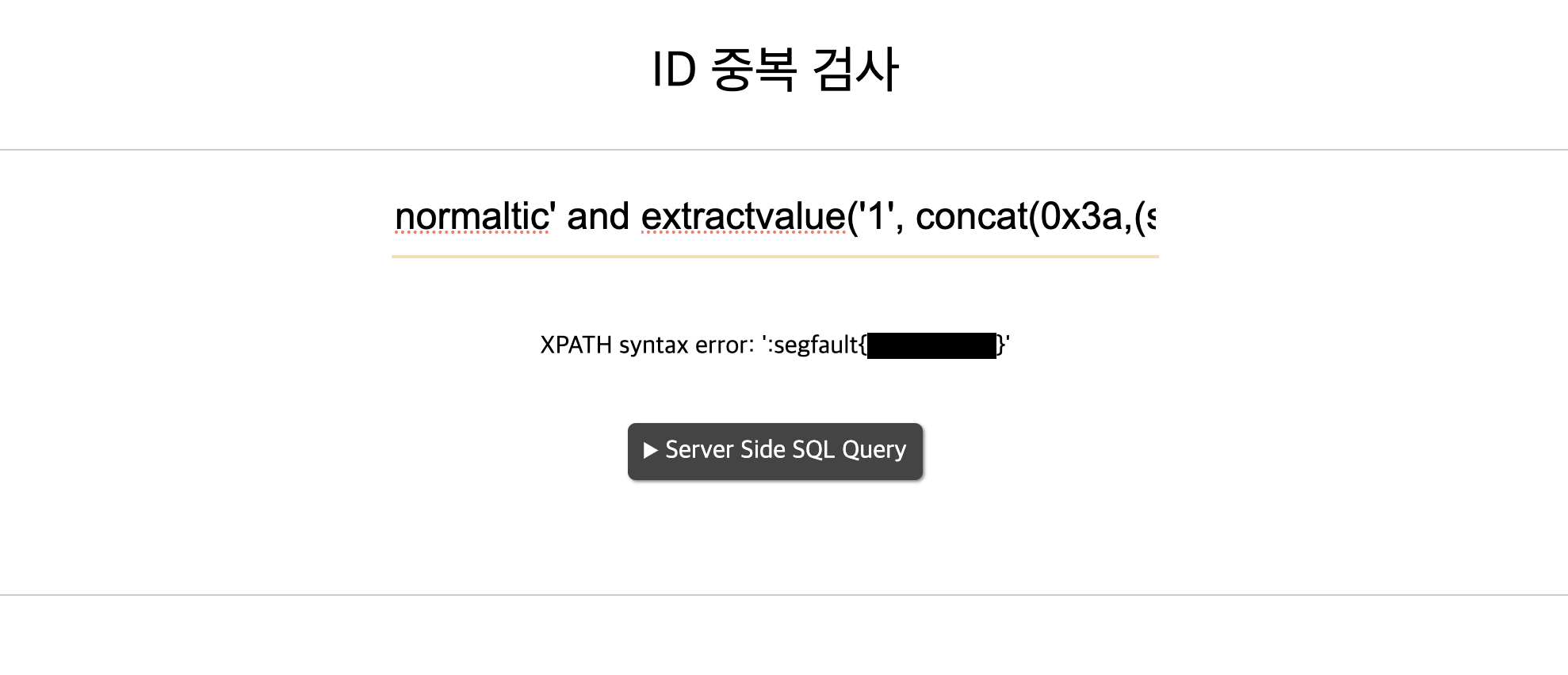 • MySQL의 경우: extractvalue() 또는 updatexml()을 사용하여 XML 파싱 오류를 유도합니다.