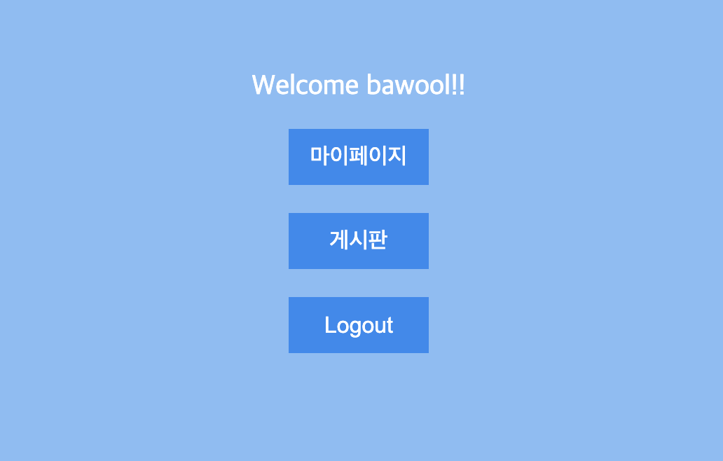 로그인 성공 시 해당 사이트로 이동하게 된다. 마이페이지와 게시판을 이용할 수 있다. 마이페이지부터 확인해 보도록 하자!