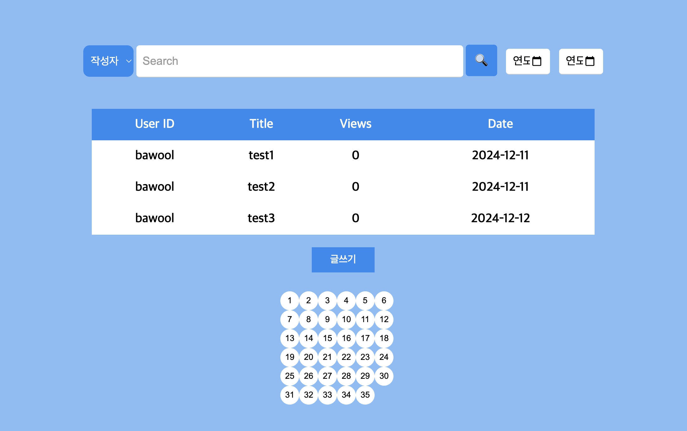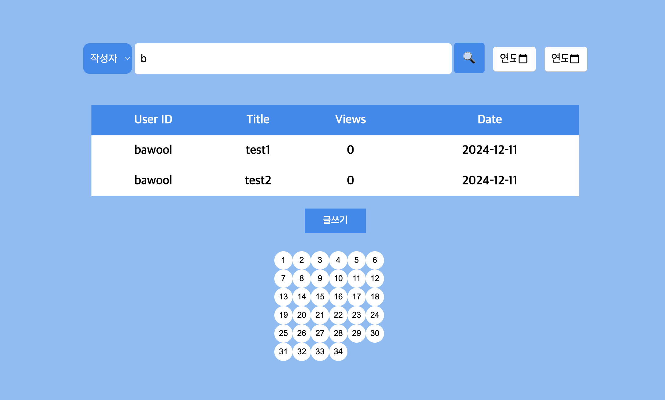 총 3개의 게시글을 작성한 후 검색 기능을 사용해 검색을 해보았다.