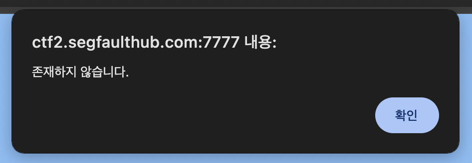 일치한 문자가 하나라도 있을 경우 글을 보여준다. 이걸로 알 수 있는 건 like%__%를 사용하는 걸 알 수 있다. 그리고 일치하는 문자가 없을 경우는 에러 메시지가 나오는 걸 볼 수 있다.