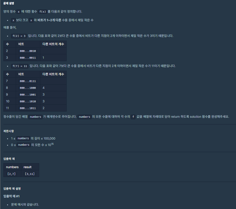 이런식으로 하면 비트가 다른 지점이 2개 이하이면서 가장 작은 수 완성