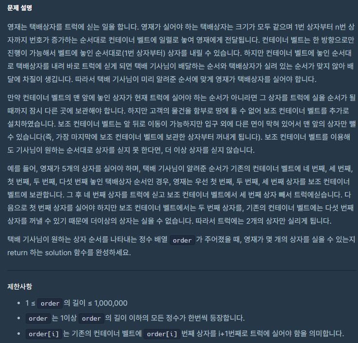 암튼 보조 컨테이너 stack에 현재 들어오고 있는 박스를 넣는 풀이 방식으로 풀었다. 그러나~ 두둥!