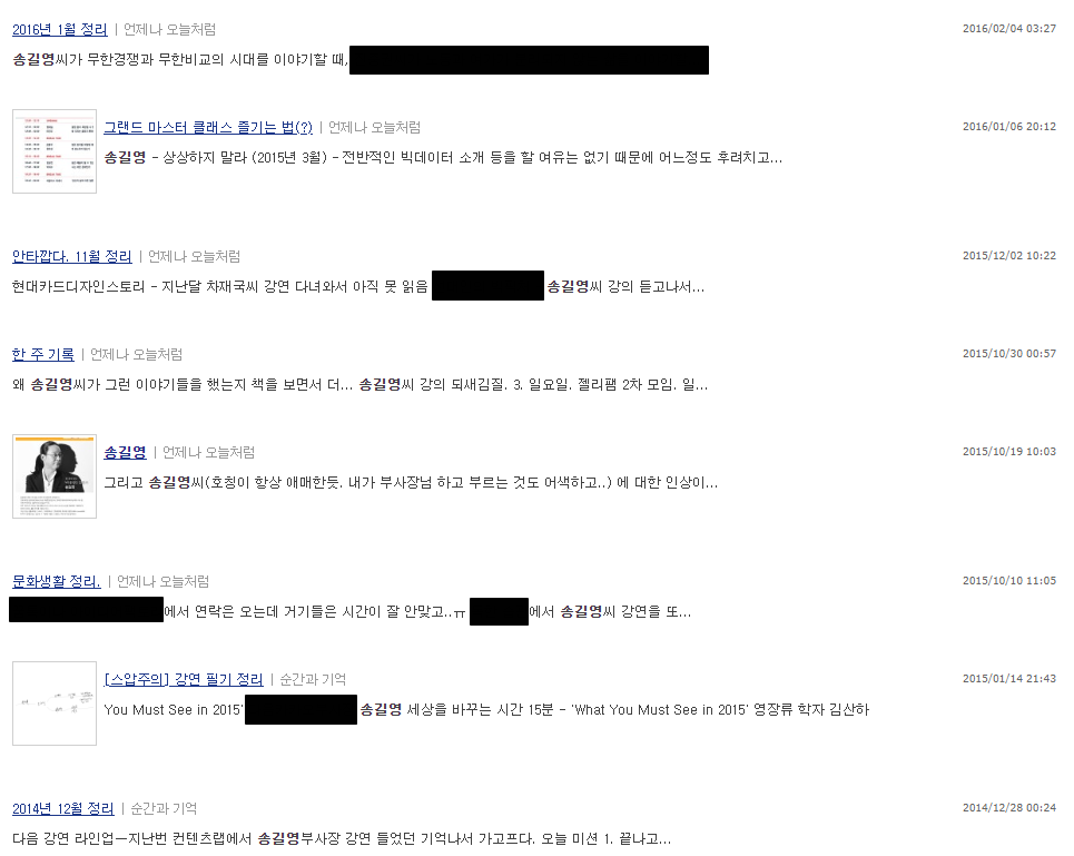 사진 : 지금은 숨김처리 해둔 네이버 블로그 기록들