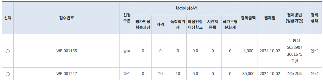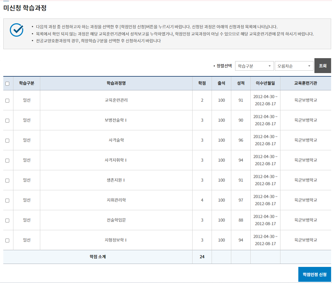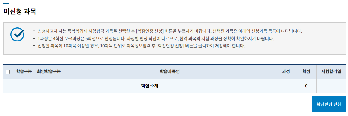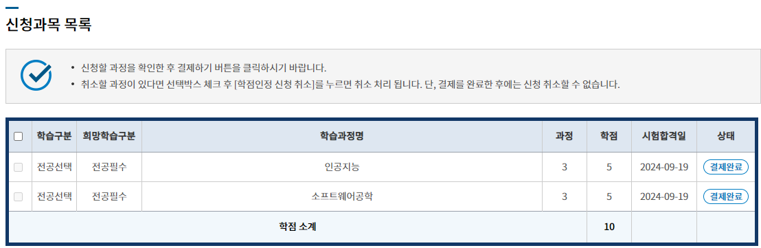 학습자 신청과 학점신청까지 같이 다 한 사진이다.