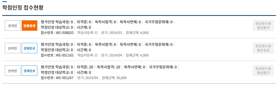 나는 7월 3분기 신청 때 신청을 했다가 졸업증명서를 등록 안해서 환불받고