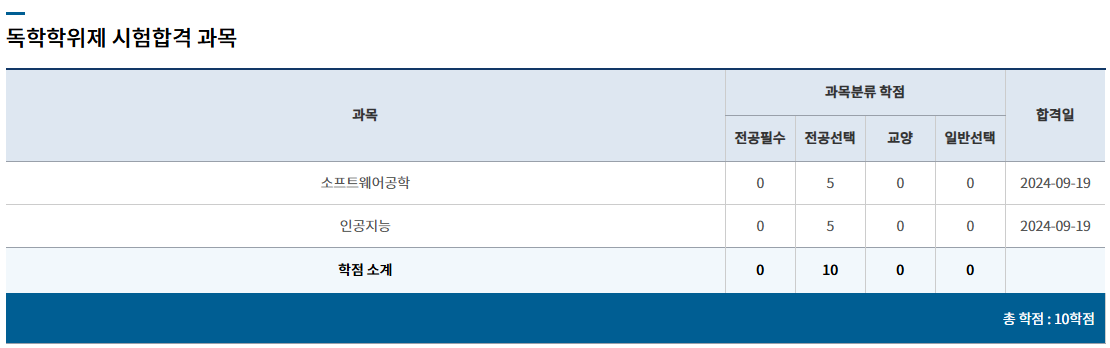 • 독학사 10학점