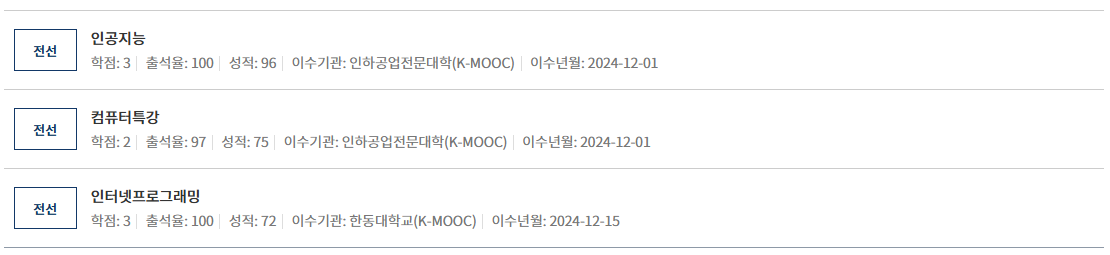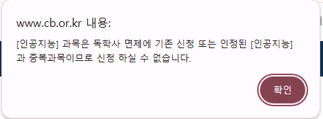 독학사에서 취득한 '인공지능' 5학점과 K-MOOC 에서 수강한 '인공지능'이 같은 과목명이라