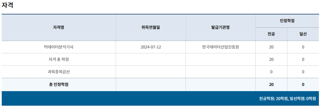 • 빅데이터 분석기사 20학점