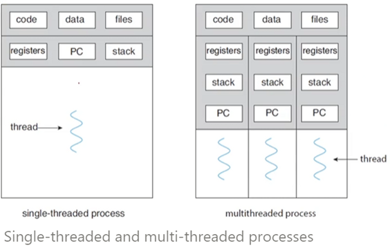 프로세스는 공유 메모리(shared-memory) or 메시지 패싱(message-passing)을 이용해서 자원을공유할 수 있지만, 스레드는 Code, Data, File, Memory…를 공유하여 효율적이다.