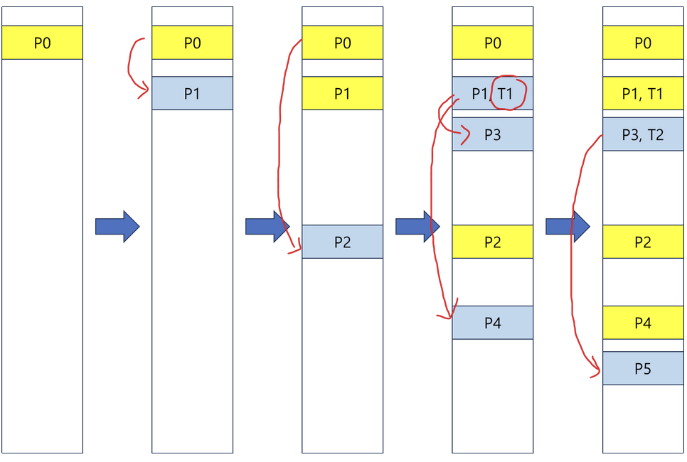 부모 P0을 실행했으니, 자식 P1을 실행한다.