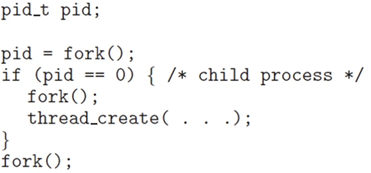 → P1은 thread_create를 통해 쓰레드1을 생성 후, if문 밖의 fork();를 통해 자식 P4를 생성.