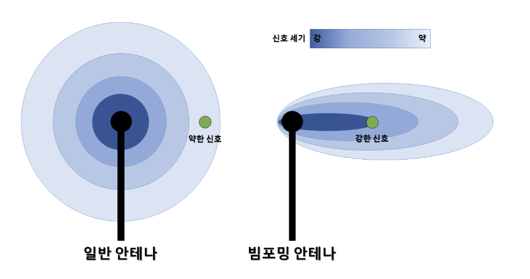 각 안테나에 서로 다른 위상(phase)을 주입하여