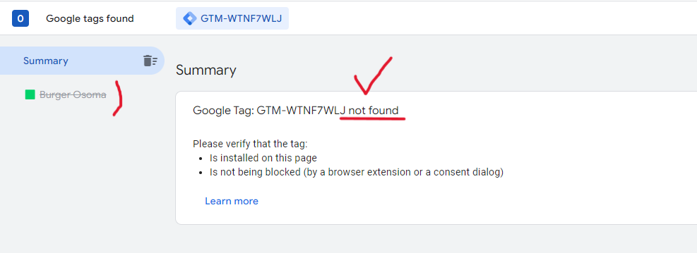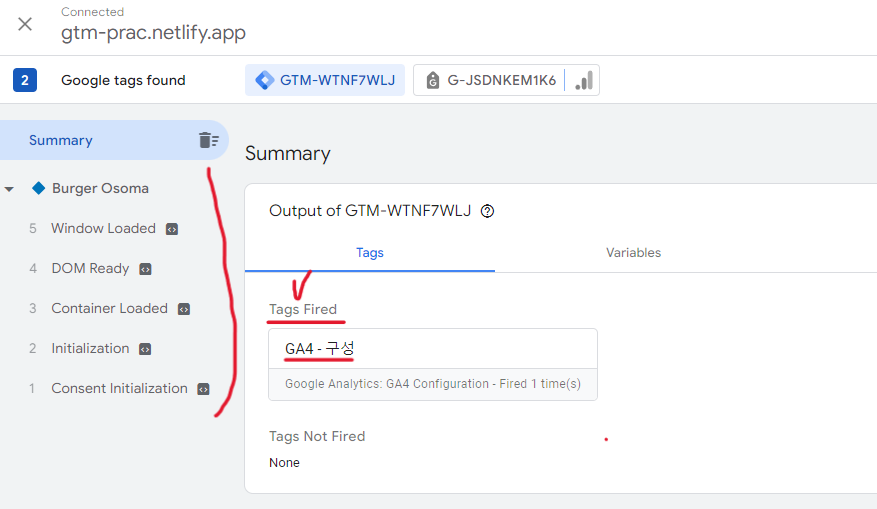 (gtm 태그를 심은 후) url 연결 성공 - "tag 를 찾을 수 없다.(not found)"