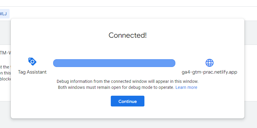 3. url창이 뜨긴 했는데, 연결되었다는 tag assistant의 팝업이 뜨지 않았었다. '확장프로그램'에 문제가 있나? 두번 확인했다.