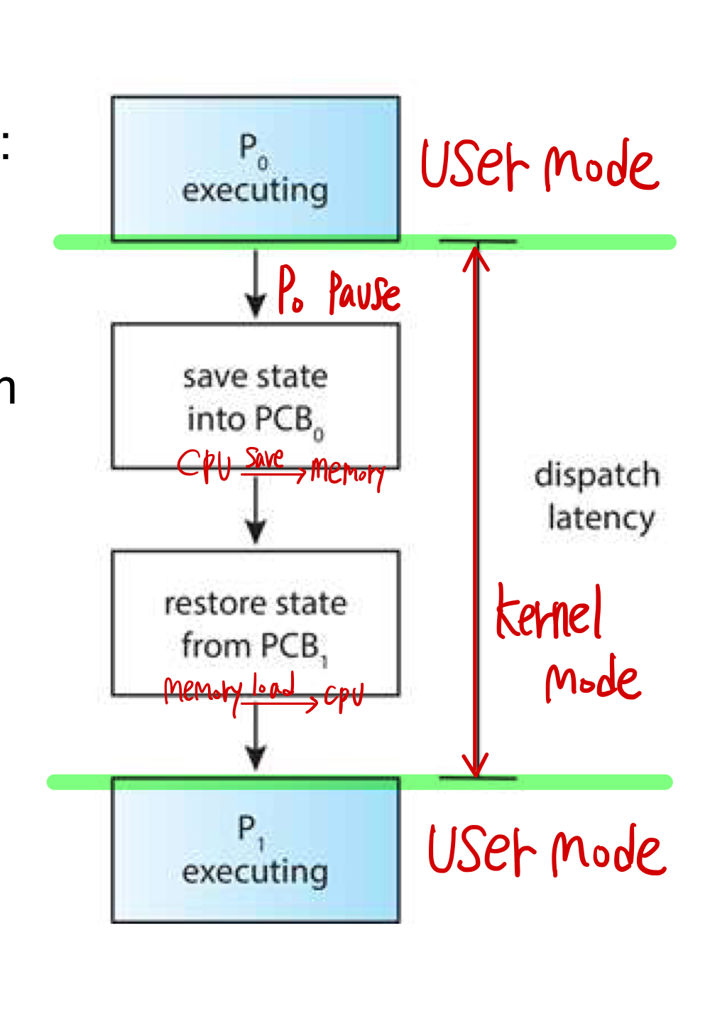 - 한 프로세스가 끝나고 다음 프로세스가 실행되기 전까지 걸리는 시간을 Dispatch latency라고 한다.