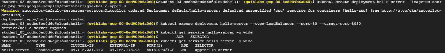 이미지 이름 / 타입 / cluster IP / external IP / 포트 / 생성기간 /