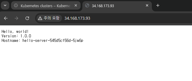 해당 외부 IP로 접속하면 이미지로 되어있던 어플리케이션이 배포된 걸 확인할 수 있다.