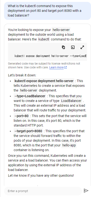 Gemini를 사용한 배포 코드가 CLI로 바로 연결되어서 편리했다. 쿠버네티스는 배워보고 싶은데 심리적 장벽이 있던 건데 간단하게나마 생성해볼 수 있어서 좋았다.